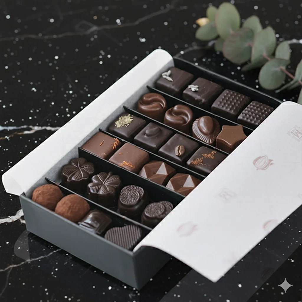 Zarif bir lezzet klasiği!  %70 bitter çikolata kaplı ve içi fındık dolgulu benzersiz bir tat sunuyor.  24 adet özenle hazırlanmış bu spesiyal çikolata, hem şık sunumu hem de yoğun aromasıyla göz dolduruyor.